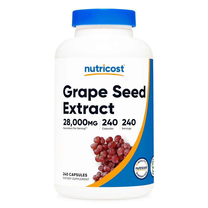 Nutricost Grape Seed Extract contains 28,000mg equivalent of grape seed extract (from 400mg of Grape Seed 70:1 extract) in each serving. Each bottle contains 240 servings, so 1 bottle can last up to 8 months if taken according to recommended dosage. This supplement is gluten free, non-GMO, and vegetarian friendly. All Nutricost products are manufactured in GMP complaint, FDA registered facilities and each batch of every product is tested by independent, ISO-accredited laboratories to insure safety and quality.