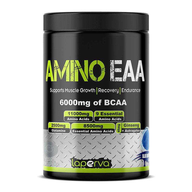 The Amino EAA product from Laperva Company is one of the world’s most distinguished nutritional supplements for building the body and muscles with a comprehensive formula of essential amino acids in addition to glutamine and special absorption stimulants (AstraGin) to ensure efficient absorption and bioavailability in the blood plasma, and thus the efficiency of the vital processes associated with the product. The product features the ICE EFFECT feature, which provides more comfort during training due to the increased amounts of oxygen entering the airways, which improves the breathing process. Also, the product is high-quality British manufactured according to international standards to ensure the highest quality. Amino acids (the main component of the product) are directly metabolized within the skeletal muscle to strengthen and restore muscle, produce energy, and reduce muscle fatigue after intense exercise.
