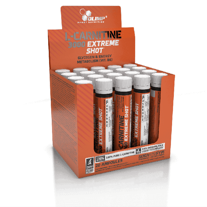 L-CARNITINE 3000 EXTREME SHOT™ offers the largest dose of L-carnitine available on the Polish market. The effect of L-carnitine is reinforced with additional vitamin B6 which allows for a synergism of activity with L-carnitine in the energy generation processes occurring during intensive physical effort. The use of Liquid Technology increases the speed of absorption of the preparation’s unique ingredients. The ampoule enables the instant absorption of L-carnitine and vitamin B6 into bloodstream, without the delay characteristic for tablets or capsules. L-CARNITINE 3000 EXTREME SHOT™ amazes not only with its efficiency but also with its delicious flavours – cherry and orange.