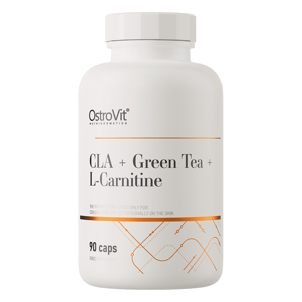 OstroVit CLA + Green Tea + L-Carnitine is a high-quality dietary supplement, which is a source of conjugated linoleic acid, as well as green tea leaf extract and L-carnitine. It is a preparation available in the form of easy-to-swallow capsules, designed for physically active people and conscious consumers who want to supplement their daily diet with valuable ingredients.