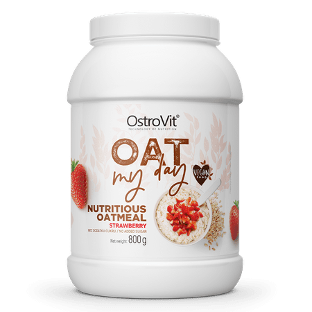 OstroVit Oat My Day is a nutritious oatmeal, which is distinguished by the richness of dietary fiber. It is a product that does not contain added sugar, and the sweet aroma is due to pieces of natural, freeze-dried fruit and a low-energy sweetener, which is sucralose. It is a mixture with a sweet strawberry flavour, which is a simple and valuable meal, and will be great among people who want to supplement the daily diet with healthy products.