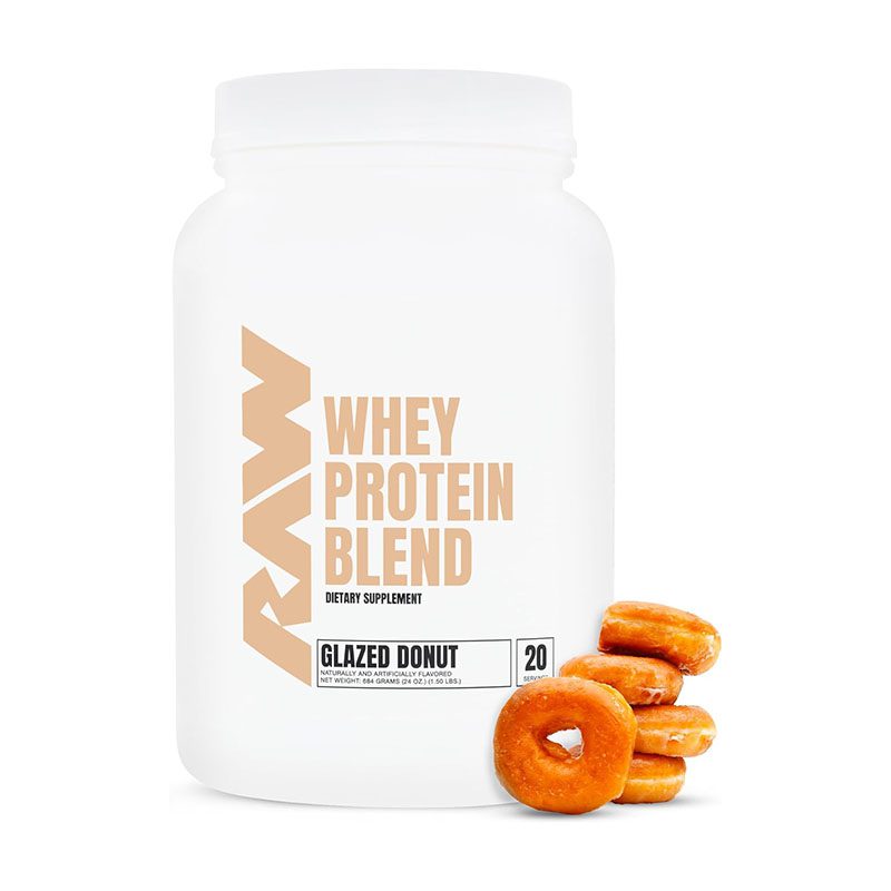 RAW Nutrition Whey Protein Blend combines three premium types of protein to ensure top-notch results in the most effective manner. This delicious whey protein powder is a clean and convenient way to help you hit your daily lean protein requirements. Each scoop packs in 25g whey protein and just 2.5g of total fat and 3g of carbohydrates. RAW Whey Protein Blend brings three of the purest forms of protein available together, aids with digestion, supports muscle growth, recovery, and offers a balanced full spectrum of amino acids and peptides necessary for muscular development. Our protein digests smooth and fast for immediate use by the body to promote the growth of lean muscle mass. Our Chocolate Milk flavor tastes just like your favorite childhood drink. Treat yourself after every workout with a delicious burst of chocolate. 20 servings.