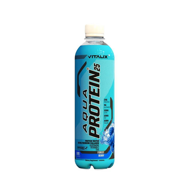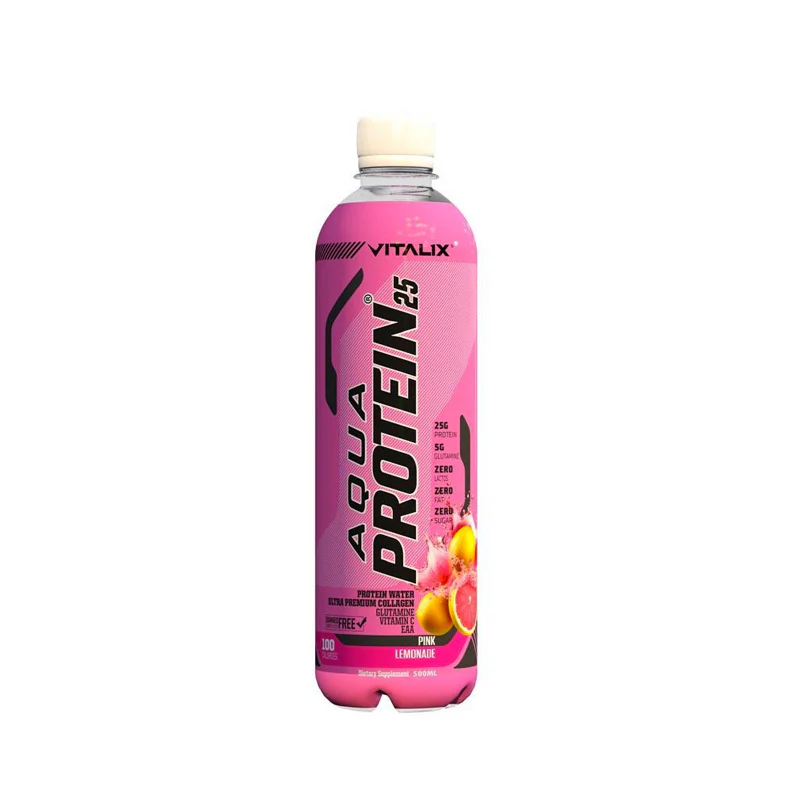 VITALIX Aqua Protein delivers 25 grams of protein and 5 grams of glutamine in each bottle, all in a light, refreshing water base. It’s the perfect way to rehydrate and kickstart muscle recovery simultaneously after a tough workout. With zero sugar and zero fat, it’s the cleanest and most refreshing way to get your protein in.
